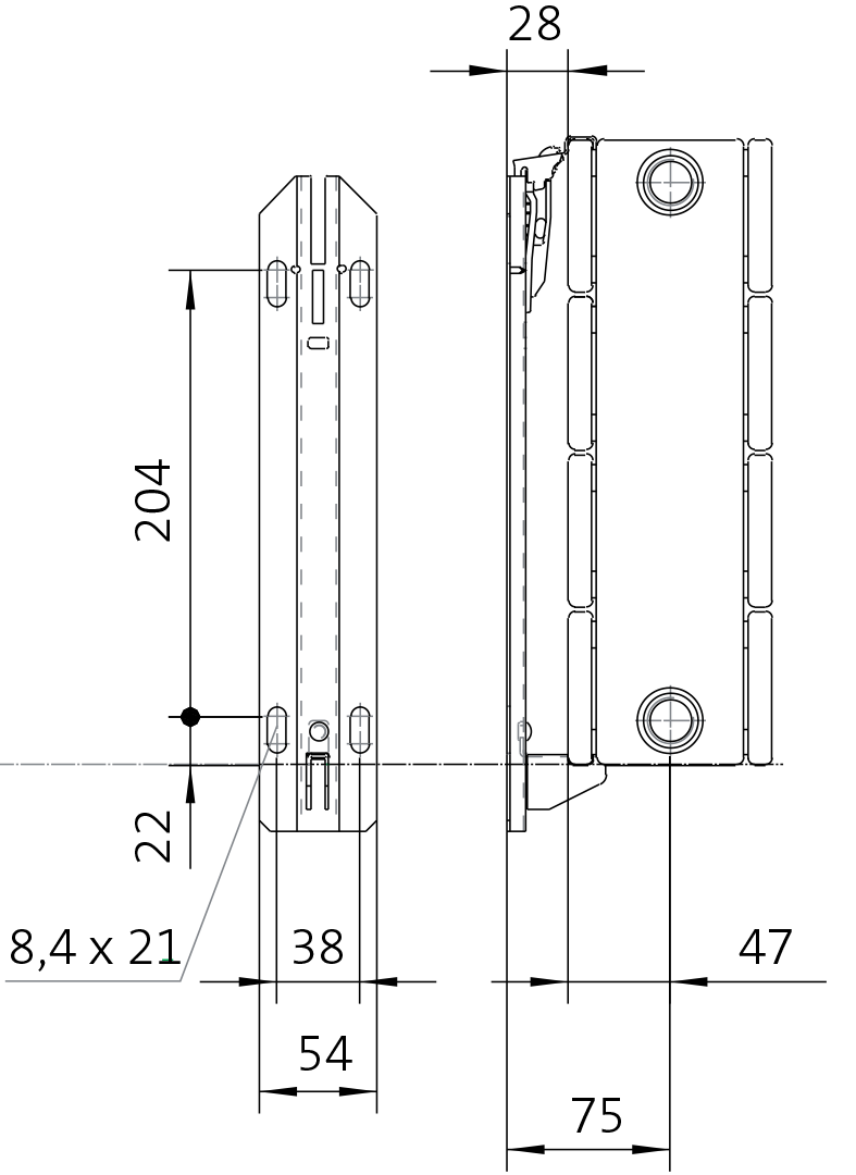 KON 22дві нагрівальні панелі, два конвективних елемента |
