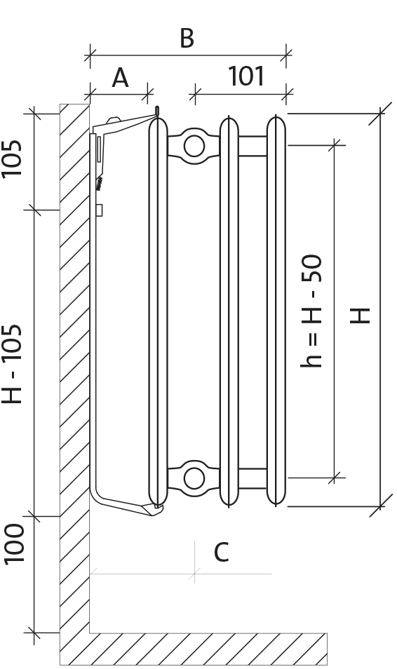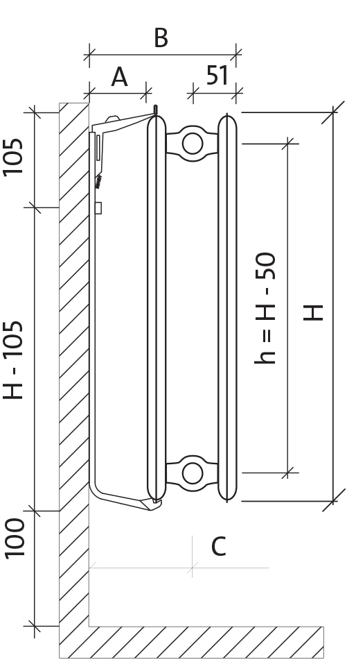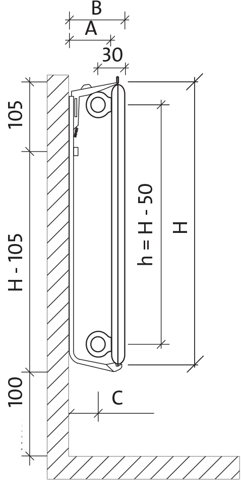 Настінний кронштейн для радіаторів типу: H10, H20, H30Кількість консолей, залежно від висоти і довжини радіатора, наведено в окремій таблиці |