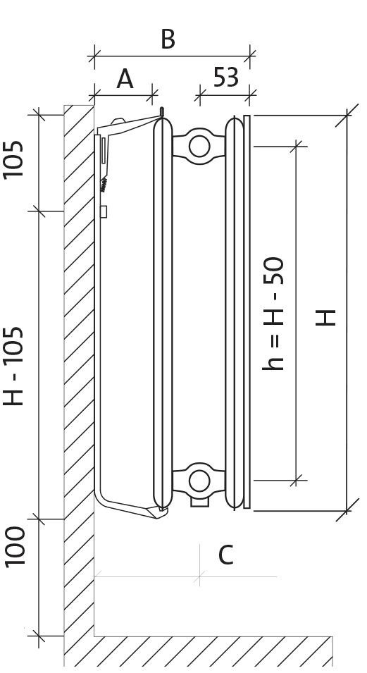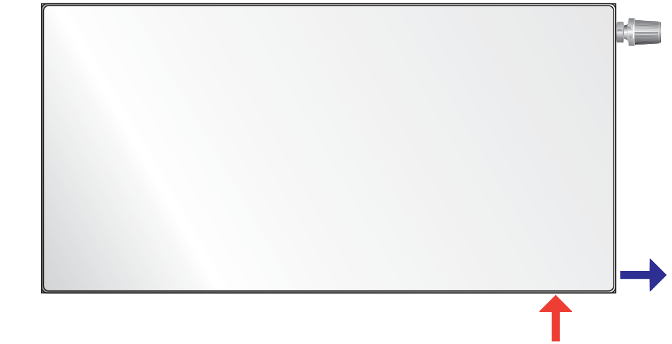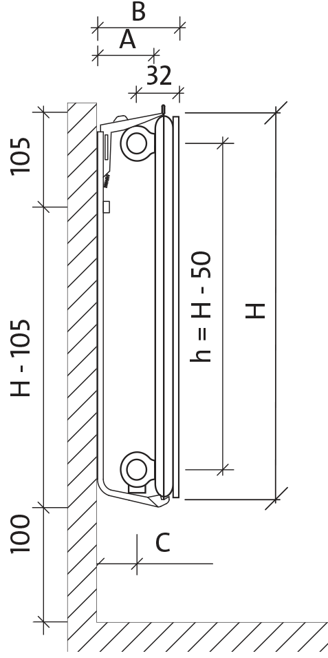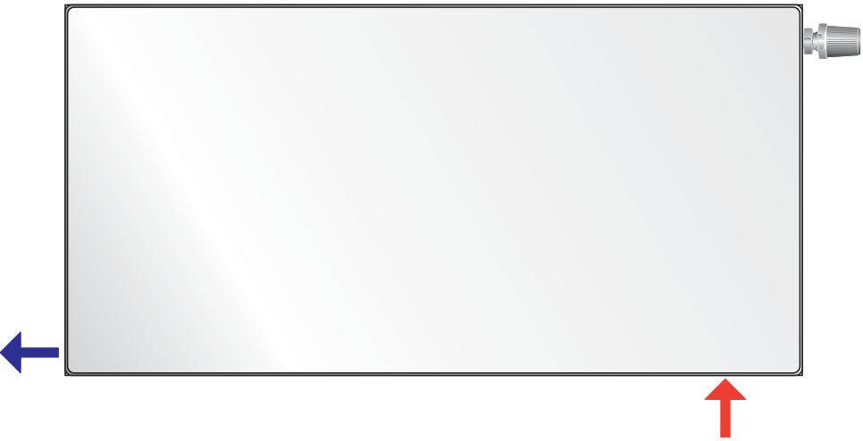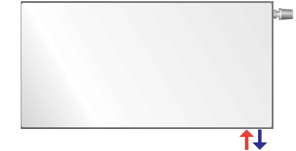 приєднання знизу:Застосовується для радіаторів з нижнім приєднанням. Вісь штуцера подачі завжди розташована за 80 мм від бокової поверхні радіатора, а вісь зворотногоза 30 мм від краю. За оберненого приєднання теплова потужність радіатора спадає на понад 30%. |