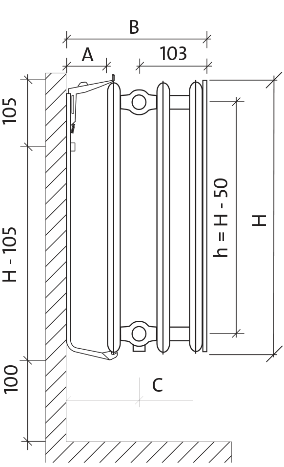 Настінний кронштейн для радіаторів типу: FH10, FH20, FH30Кількість консолей, залежно від висоти і довжини радіатора, наведено в окремій таблиці |