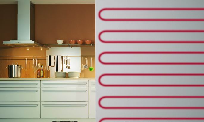 Настенные облицовки из таких изоляционных материалов, как пробка, пена, обивка из ткани, деревянная обшивка, будут препятствовать эффективной работе системы стенового отопления. Решение о выборе облицовочного материала для стены должно приниматься с учетом испытаний на пригодность материала для отделки нагревательной стены.