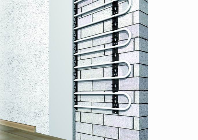 Стеновое отопление Purmo может работать с традиционными штукатурками. Трубы крепятся непосредственно в стену с помощью планок.