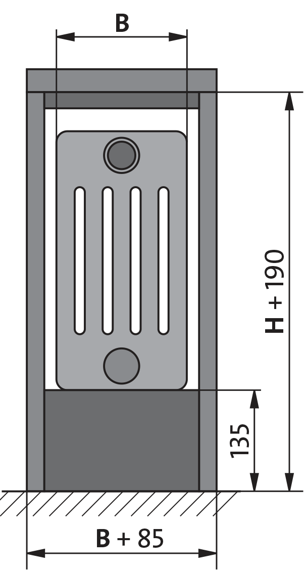 | Крепление: | декоративный комплект для монтажа на полу и для маскировки подключений радиатора с возможностью установки верхней декоративной панели у клиента. |