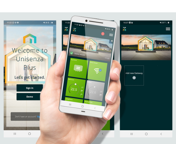 С помощью приложения Unisenza Plus вы легко подключаете и управляете до 100 устройствами отопления и охлаждения одним нажатием. Котлы, комнатные термостаты, тёплые полы, полотенцесушители, гидравлические и электрические радиаторы — всё это можно объединить с помощью шлюза Unisenza Plus и управлять ими через приложение.