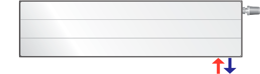 Применяется для радиаторов, запитываемых снизу. Ось питательной трубы всегда расположена в 80 мм от боковой грани радиатора, а ось обратной трубы – в 30 мм.Обратное подсоединение приводит к снижению тепловой мощности радиатора более чем на 30%.